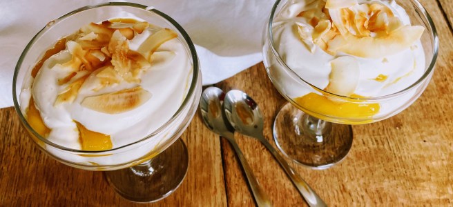 A mouth-watering dessert that you can whip up in minutes. Sweet and juicy mango is given a little extra zip with some lime, and mixed through a silky cloud of vegan cream and coconut yogurt, for a sophisticated summer treat. As much as I love baking, there have been plenty of days this summer when … Continue reading Vegan Mango and Coconut Syllabub (Gluten-free, Grain-free, Nut-free, Soya-free)