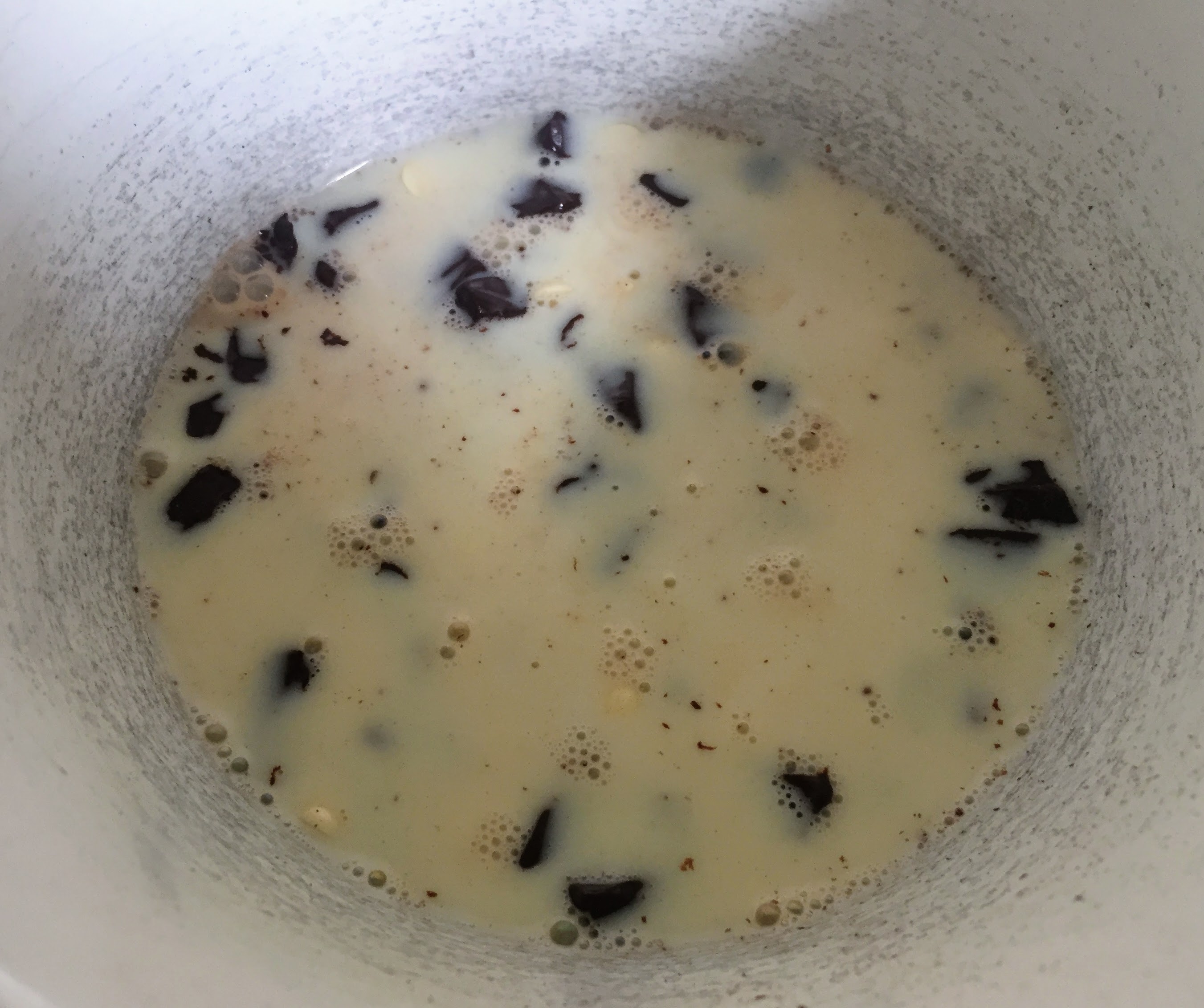 - Once the dough is proving, make the ganache. Finely chop 200g chocolate and put in a heat-proof bowl. Add 120ml non-dairy milk to a small saucepan and place over a medium heat until the milk is hot and steaming, but not boiling. Pour the milk over the chopped chocolate and leave for 5 minutes, then stir or whisk the chocolate mixture until it’s smooth and glossy. If there are still a few lumps of chocolate, put in the microwave for 10 secs, stirring thoroughly each time, until smooth. Transfer to a shallow dish or bowl and refrigerate.