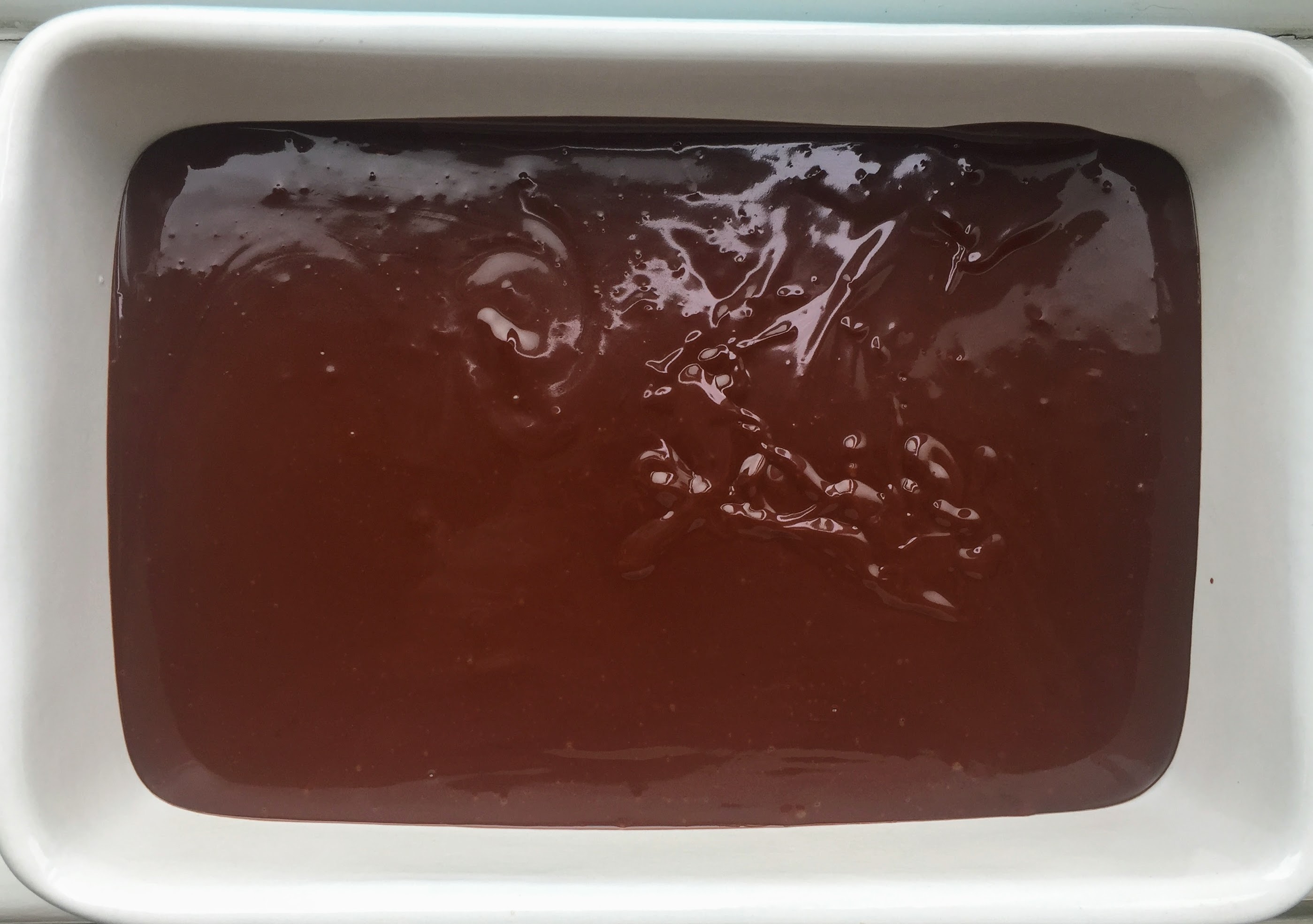 Whatever chocolate you chose, chop it very finely and place in a heat-proof bowl. Warm your non-dairy milk in a small saucepan over a medium heat. You want the milk to be hot but not boiling. When there’s plenty of steam rising from the milk, pour it over the chopped chocolate and leave it, undisturbed, for 5 minutes. Then stir with a whisk or spoon until you have a thick and glossy chocolate sauce, and add a pinch of salt to taste. If there are still some lumps of chocolate, you can blast in the microwave for 10 seconds at a time and stir thoroughly until they have all melted. Then place in the fridge – the chocolate will firm up much quicker if spread over a greater surface area; a small casserole dish or shallow bowl is ideal.