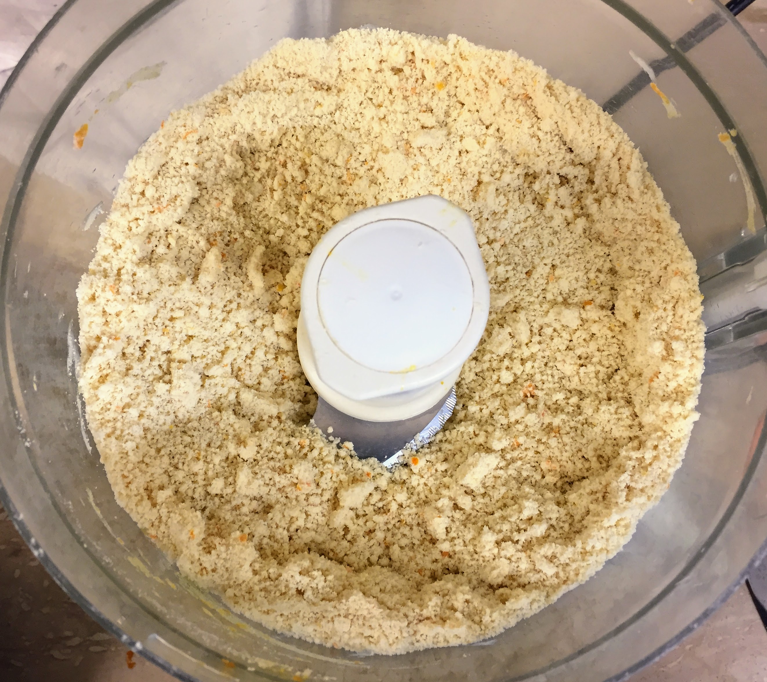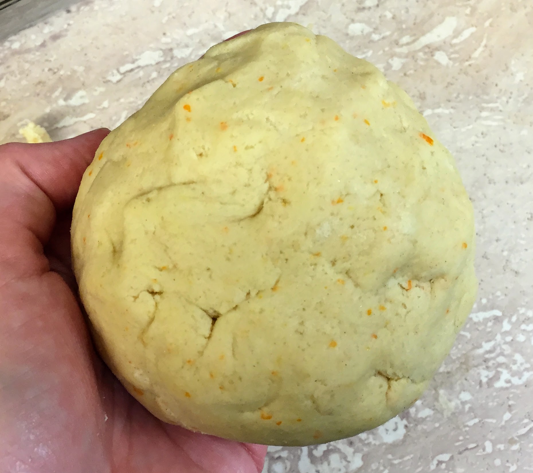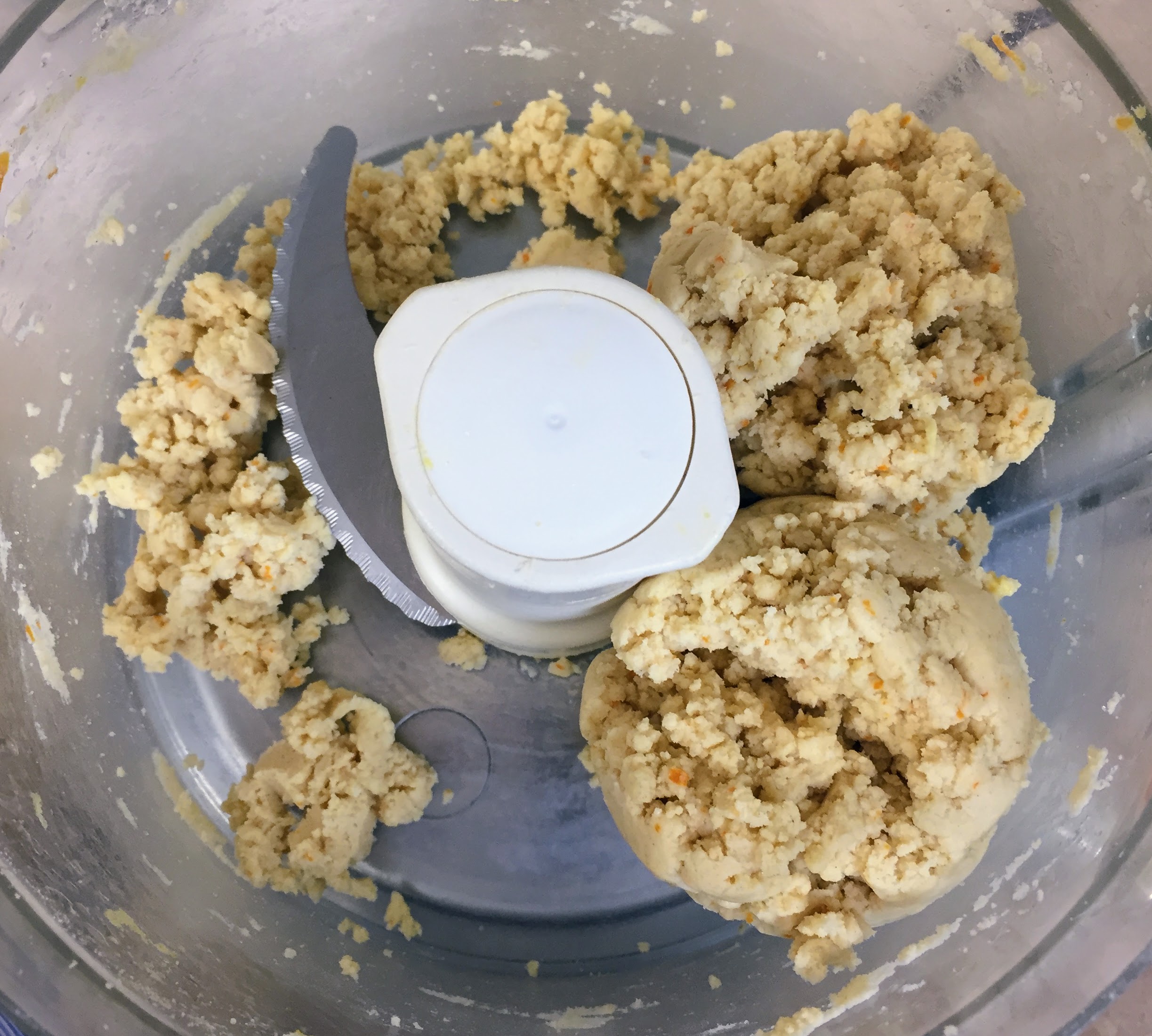If you don’t have a food processor, then rub the flour and fat together with your fingertips until it looks like breadcrumbs. Using only your fingertips (rather than palms) will keep the mixture as cool as possible. Then mix in the orange zest and sugar with a spoon, then the water, and finally bring together with your hands.