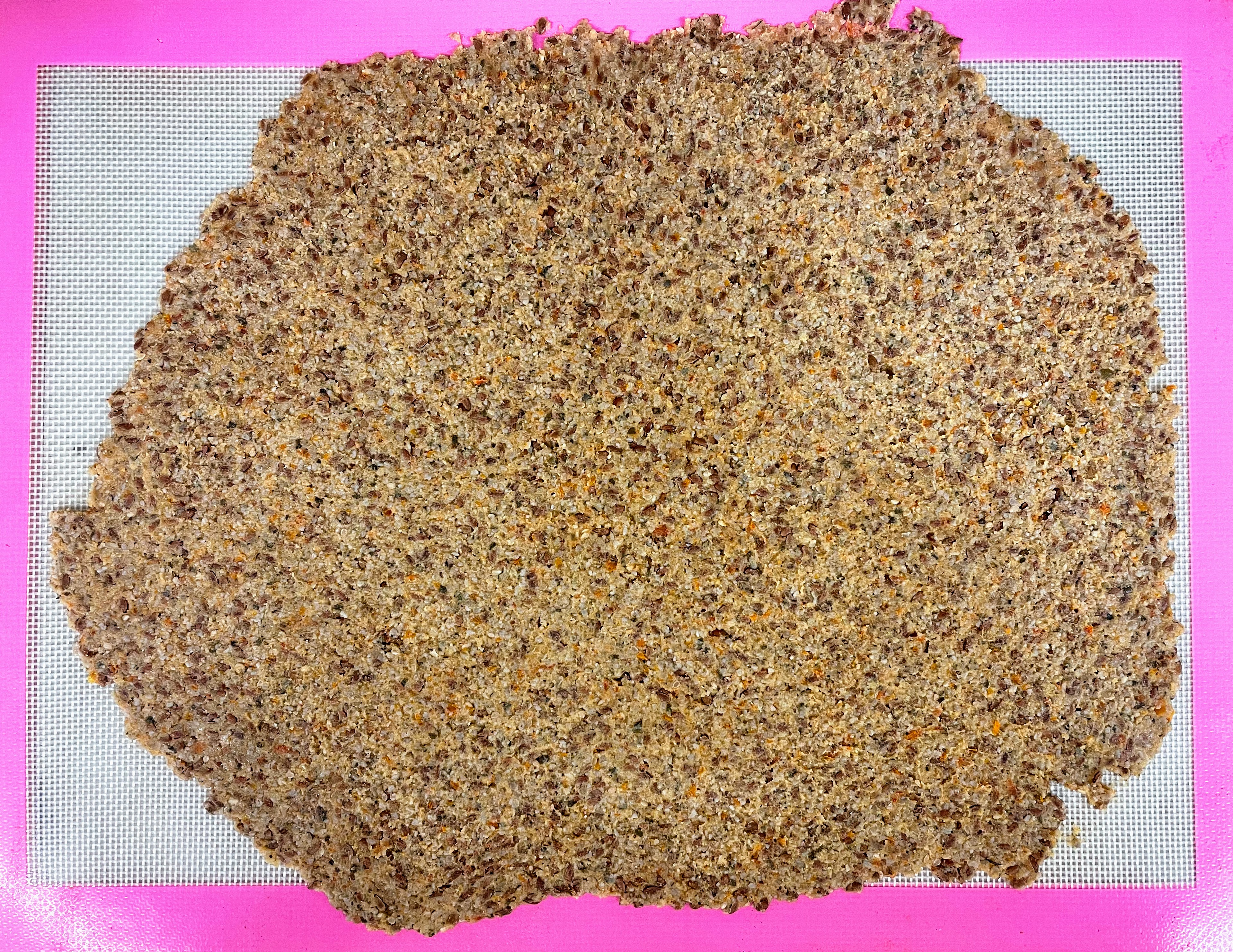 To start, tip all of the seeds into a food processor and blitz until they are roughly chopped. Blitz for longer if you prefer a less textured cracker, or only blitz the flax seeds, then add the rest of the seeds in whole for a chunkier version.