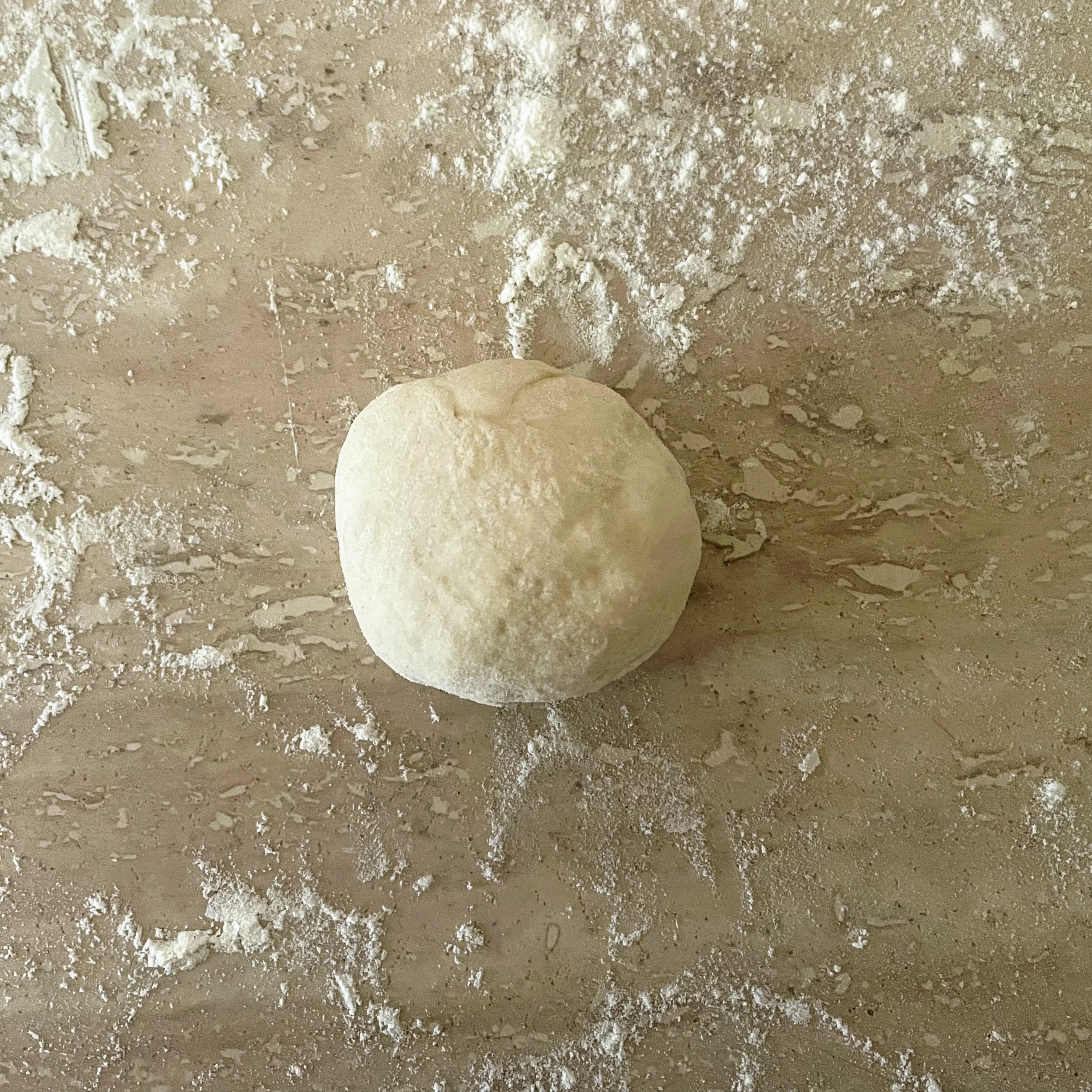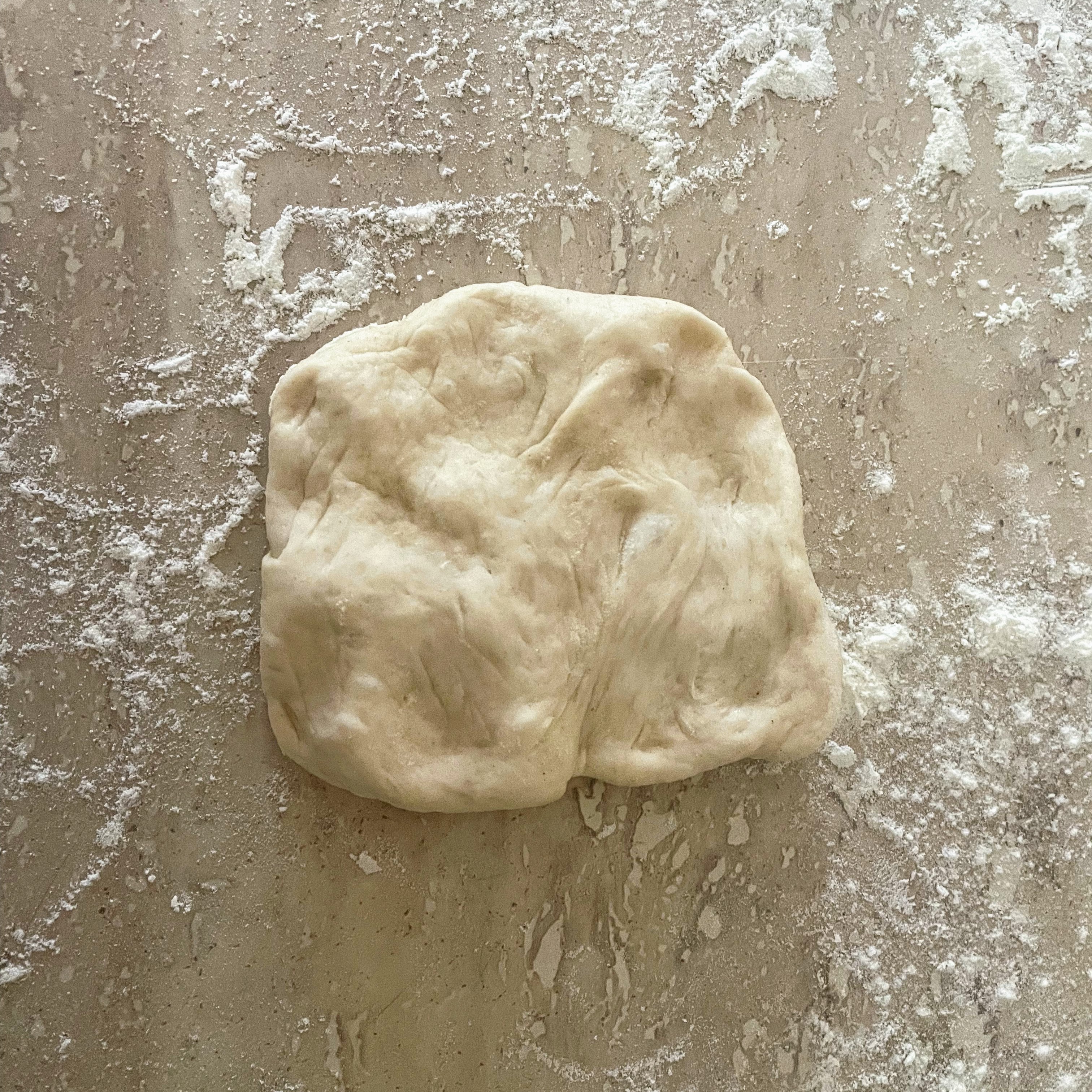 - Line a large baking tray with greaseproof paper and lightly flour your work surface. Knock the air out of your dough, tip onto the work surface, and divide into four equal pieces. Return three of them to the bowl and cover with a tea towel while you work on the remaining quarter. Divide into 5 equal pieces (each should weigh approx 41g). For each piece, flatten it into a rough square, and gently pull and fold each corner into the middle. You should have another very rough square, and once again, pull and fold each corner into the middle. Turn the dough over and turn in between your palms to form a round, then place on the baking tray and repeat with the rest of the dough. Leave to rise in a greased polythene bag for another 30 minutes.