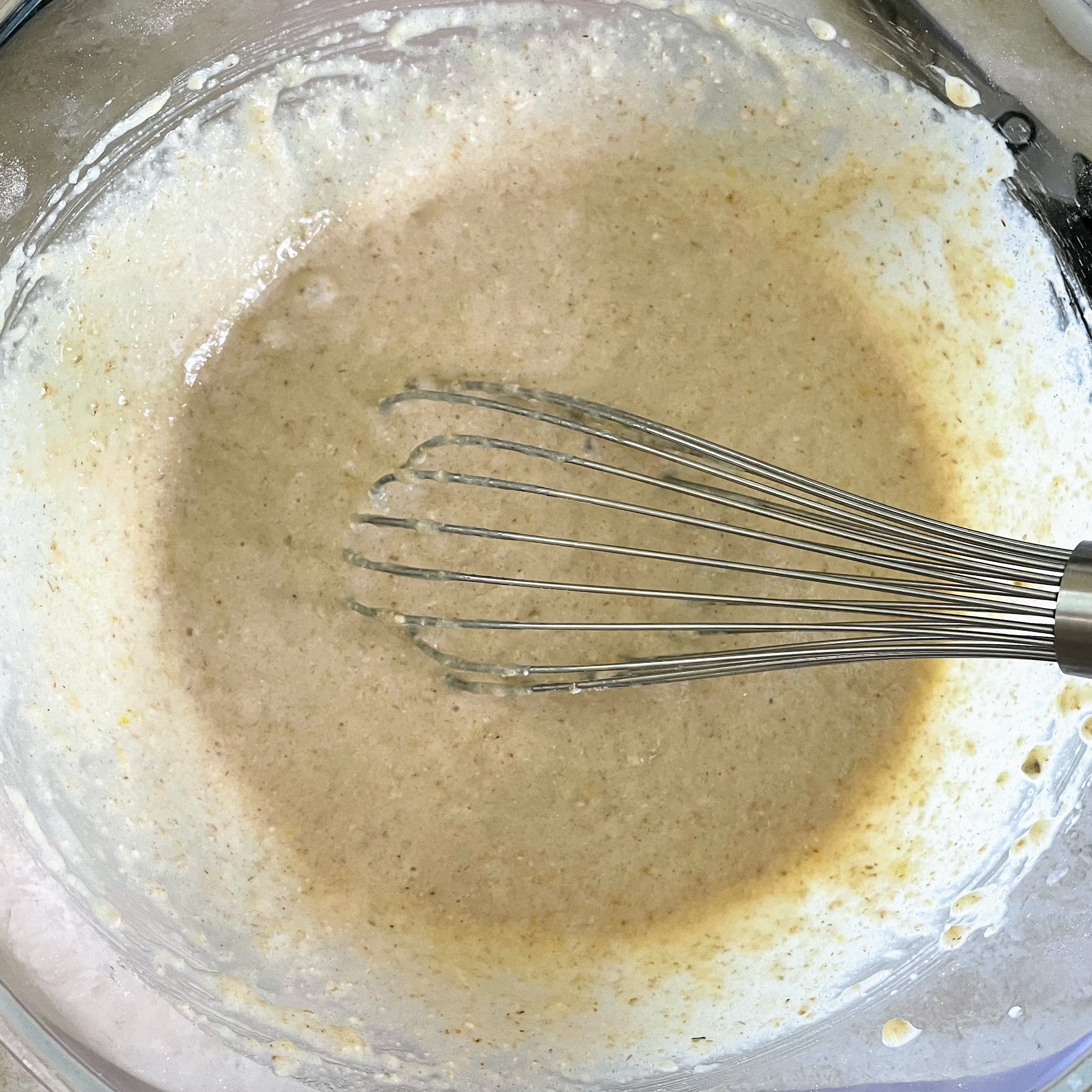 - Zest and juice the lemon. Measure out 175ml non-dairy milk into a measuring jug, mix in the lemon juice, and set aside.