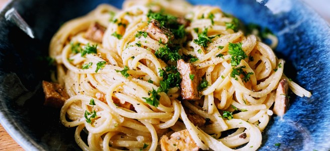 Vegan Miso Carbonara (Vegan, Gluten-free option)