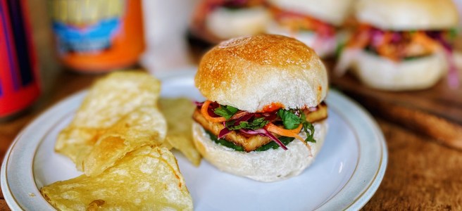 A very inauthentic version of the classic Vietnamese street food. Smoked tofu marinated in soya sauce, crunchy quick pickles, soft herbs, mayonnaise, and sriracha make up the wildly tasty filling, encased in a crusty, homemade mini burger bun. The perfect party food or game day snack! ↓ Jump to the recipe! This Sunday, the England … Continue reading Vegan Banh Mi Sliders (Vegan, Nut-free)