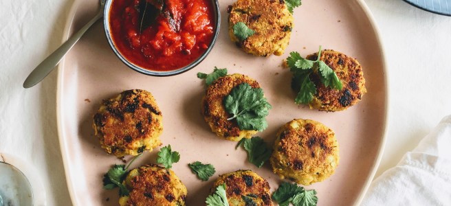 Indian Potato Cakes with a Spicy Tomato Chutney (Vegan, Gluten-free, Grain-free, Soya-free, Nut-free)