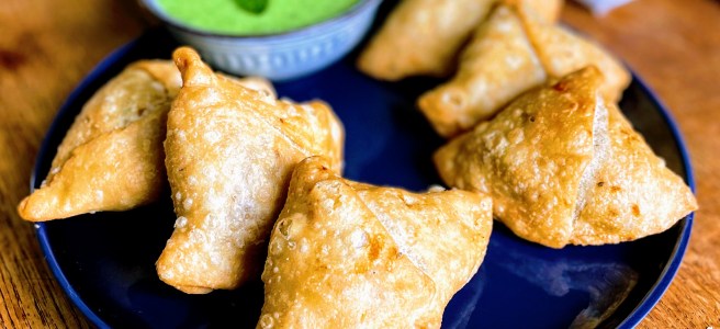 Traditional Indian samosa with a little herby twist. Beautifully crisp pastry surrounding a mouthwatering filling of spiced potatoes, peas, and mint with an optional, but delicious, tangy raita. These golden parcels are fragrant, full of flavour, spicy, and deeply satisfying. ↓ Jump to the recipe! I would need far more space than this blog post … Continue reading Pea And Mint Samosa With A Smooth Mint Raita (Vegan, Nut-free, Soya-free)